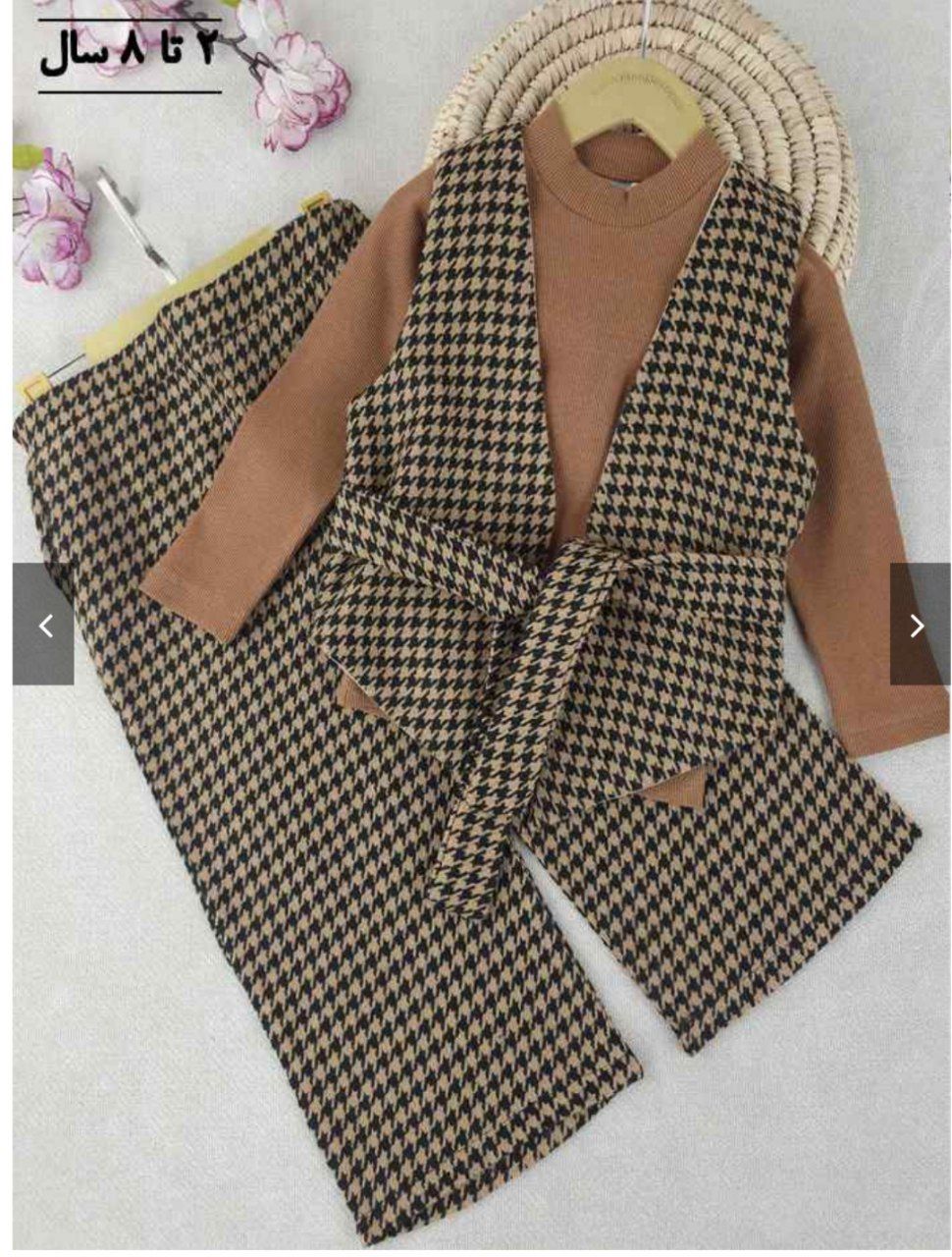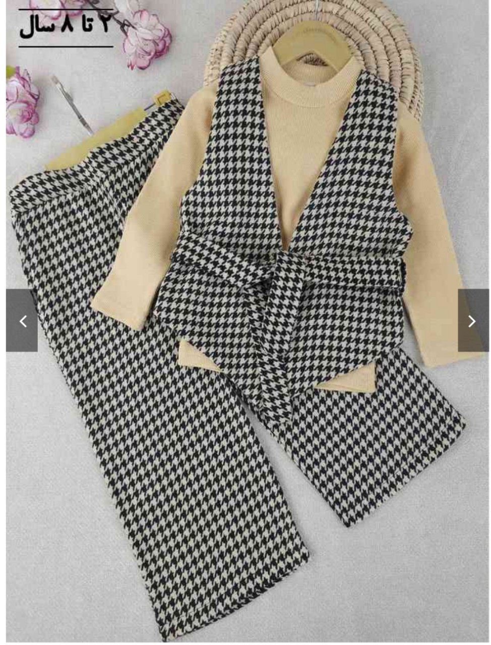 سه تیکه مدل سلین جنس بلوز فانریپ وست و شلوار پیچازیحدود ۲تا ۹سالسایز۴۰:قد وست ۳۶قد بلوز ۳۷آستین ۳۳شلوار ۵۶سایز۴۵:قد وست ۴۲قد بلوز ۴۳استین ۳۵شلوار ۶۲سایز۵۰:قد وست ۴۷قد بلوز ۴۷قد آستین ۳۹قد شلوار ۷۵سایز ۵۵:قد وست ۵۱قد بلوز ۵۳استین ۴۶شلوار ۸۰