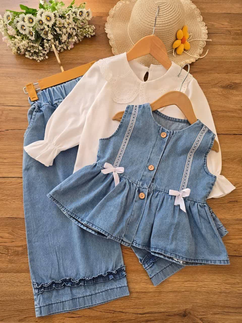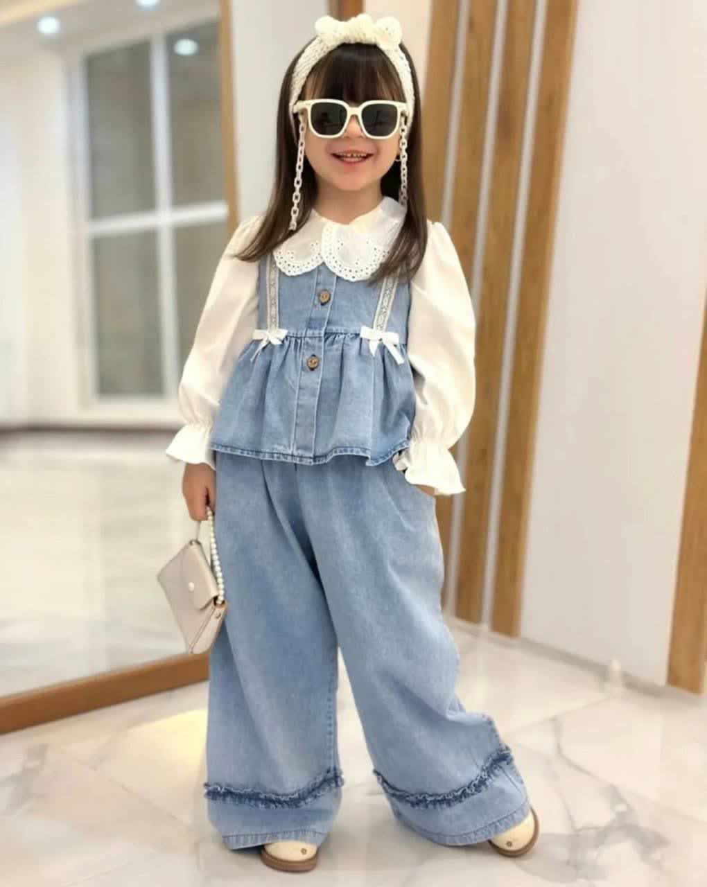 سه تیکه جین کیوت و زیبا ✌🏽کیفیت در سطح مدلای وارداتی با تنخور فوق العاده جذاب جنس شومیز پنبه عالی و جلیقه و شلوار جین 320 گرم شسته شده چهار فصل 👈شومیز باید داخل شلوار قرار بگیرد مناسب 2/5 تا حدود 8 سال بستگی به جثه سایز1👈قدشومیز40پهنا31استین از کنار یقه37قدسارافون(جین)36پهنا30قدشلوار56سایز2👈قدشومیز44پهنا33قداستین از کناریقه45قد سارافون(جین)38پهنا32 قدشلوار58سایز3👈قدشومیز46پهنا33استین از کناریقه43قدسارافون(جین)43پهنا35قدشلوار65سایز4👈قدشومیز48پهنا35آستین از کنار یقه47قدسارافون(جین)45پهنا36قدشلوار68سایز5👈قدشومیز53پهنا39استین از کناریقه52قد سارافون(جین)48پهنا37 قدشلوار75🔴حدود 2 سانت خطا در نظر بگیریدتوجه یقه رندوم است❌و به دلیل شرایط نور ممکنه رنگ لباس تیره تر یا روشن تر باشه ❌️🔴شست اول شستشو در ماشین لباسشویی فقط خود لباس ، دور متوسط و اب سردقی.مت :1/100ت🤨